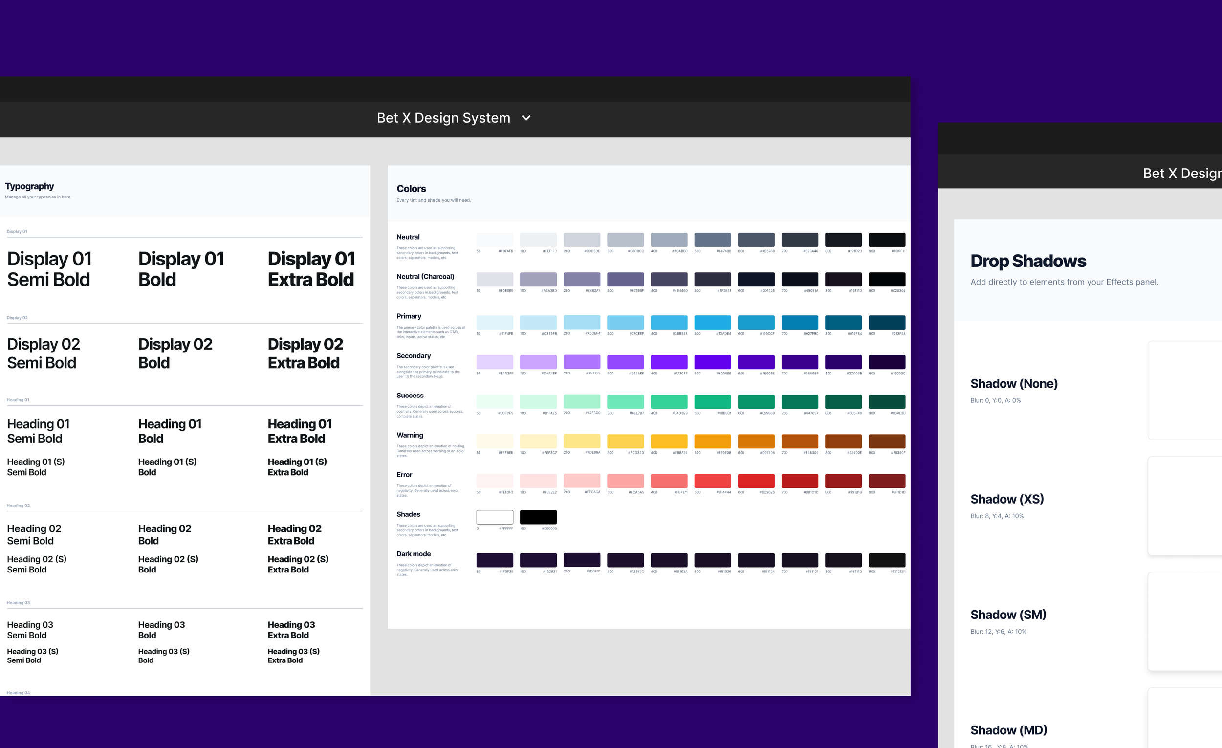 This approach extended to the creation of a responsive typography scale, grids, icons, and drop shadows. These elements were added as styles within Bet X's Design System Figma library, fostering a unified design language across teams and ensuring consistency.