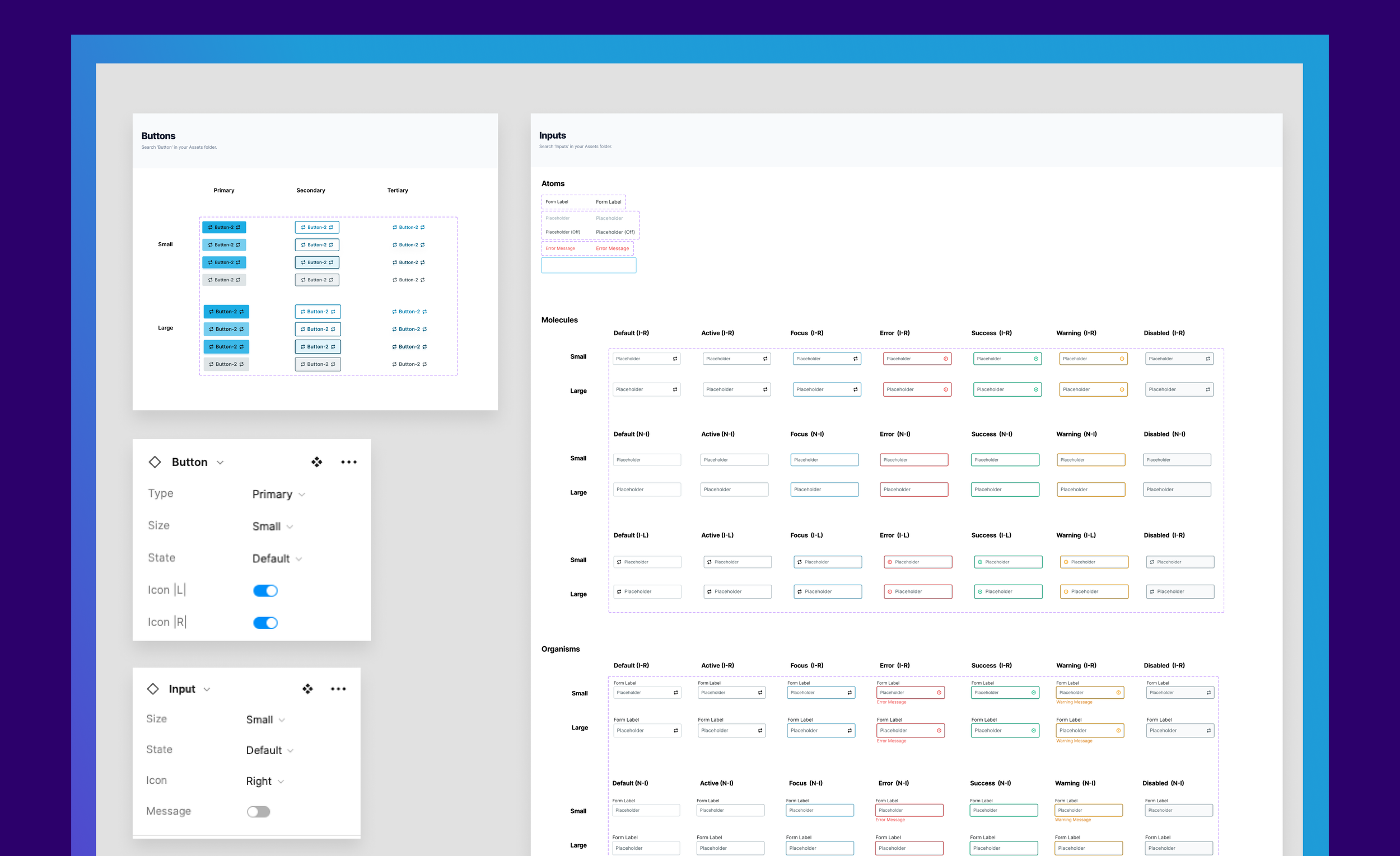 Continuing from the foundational atomic elements, the process advanced to molecule-level components such as buttons and input fields - forming the essential building blocks of Bet X's portal. Various button and form field states were created using variants and booleans, further enhancing the interactive nature of the interface.